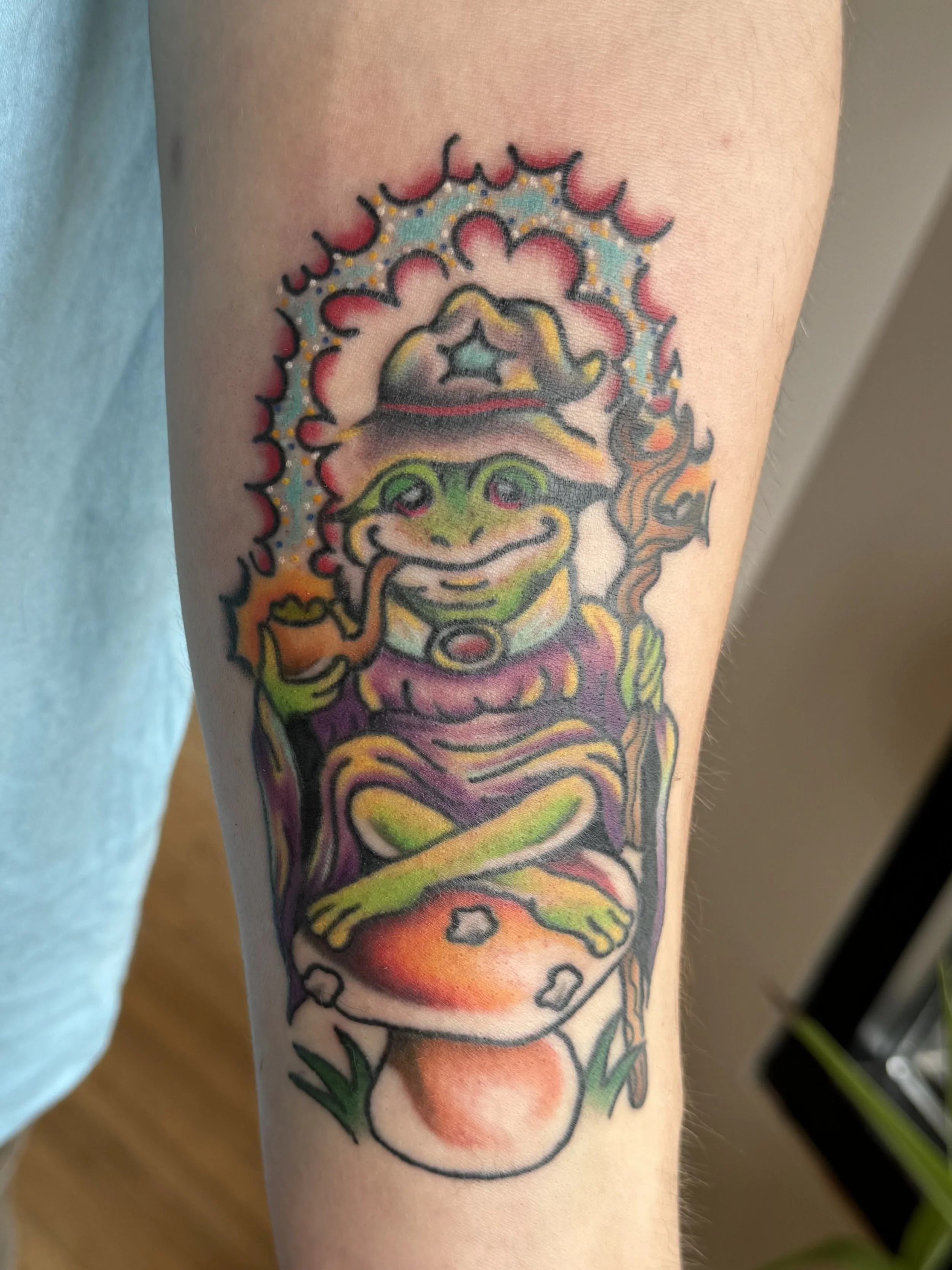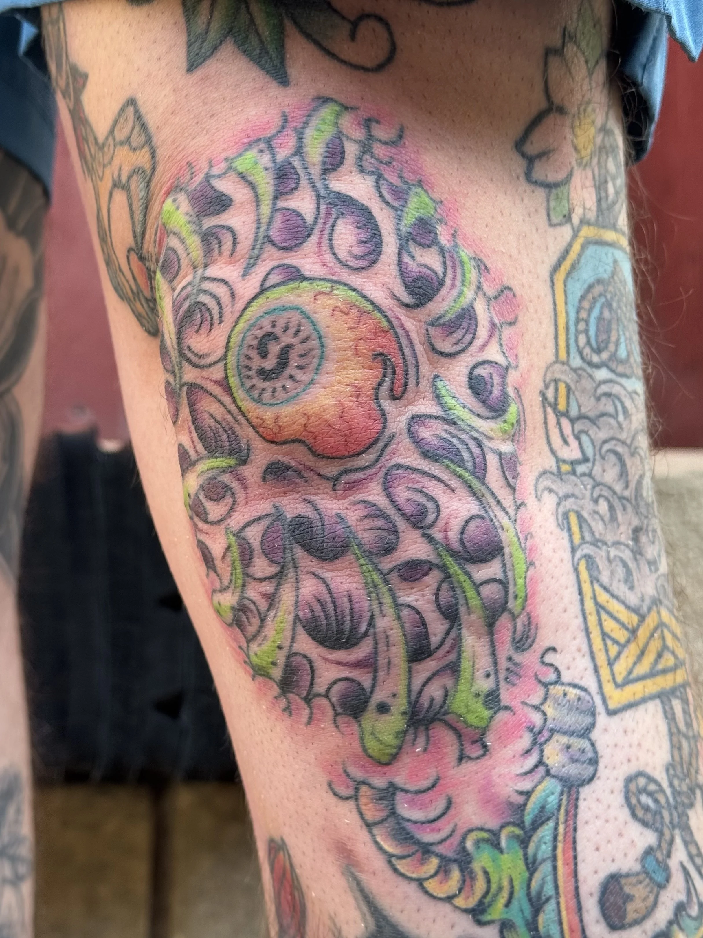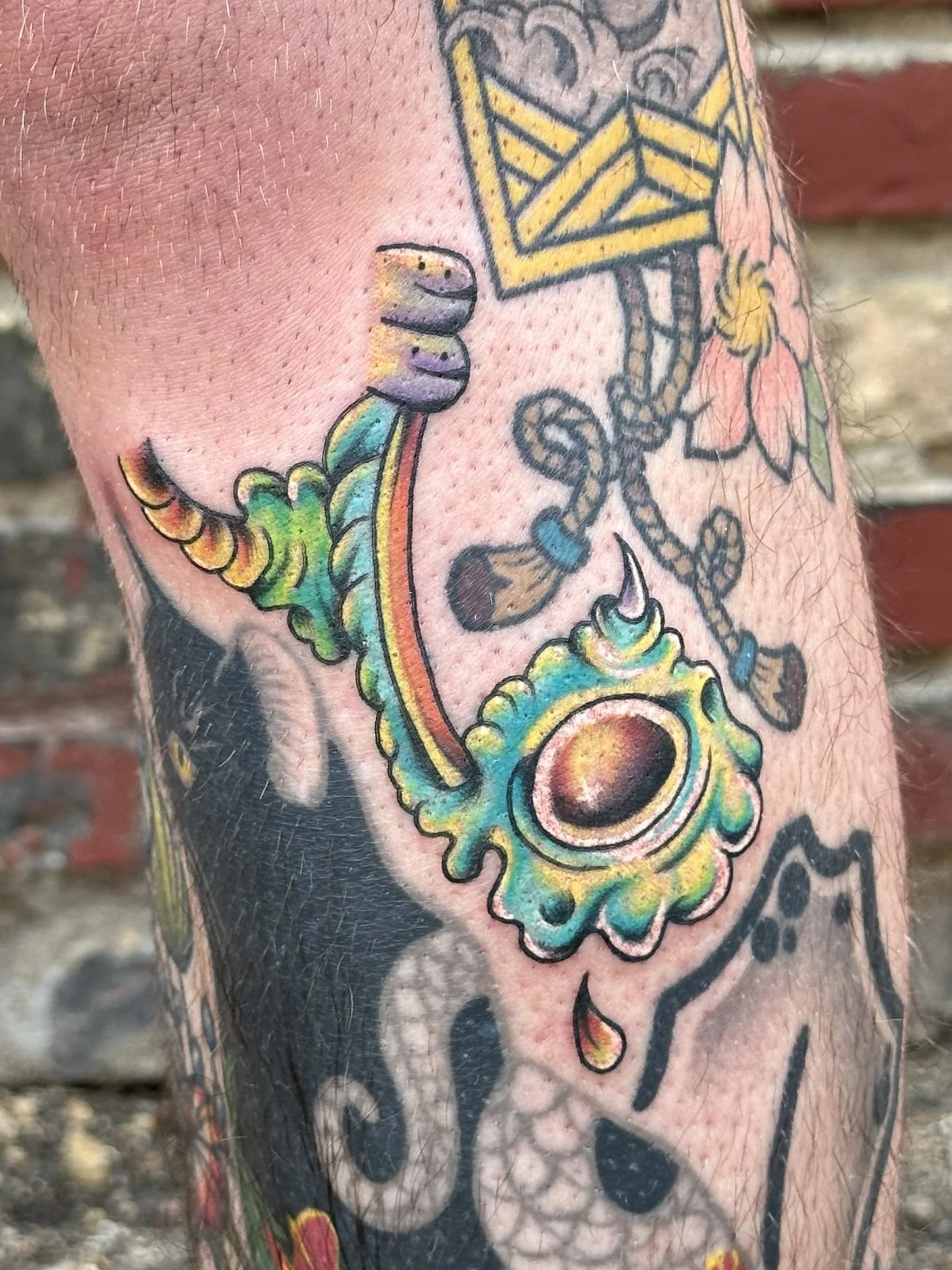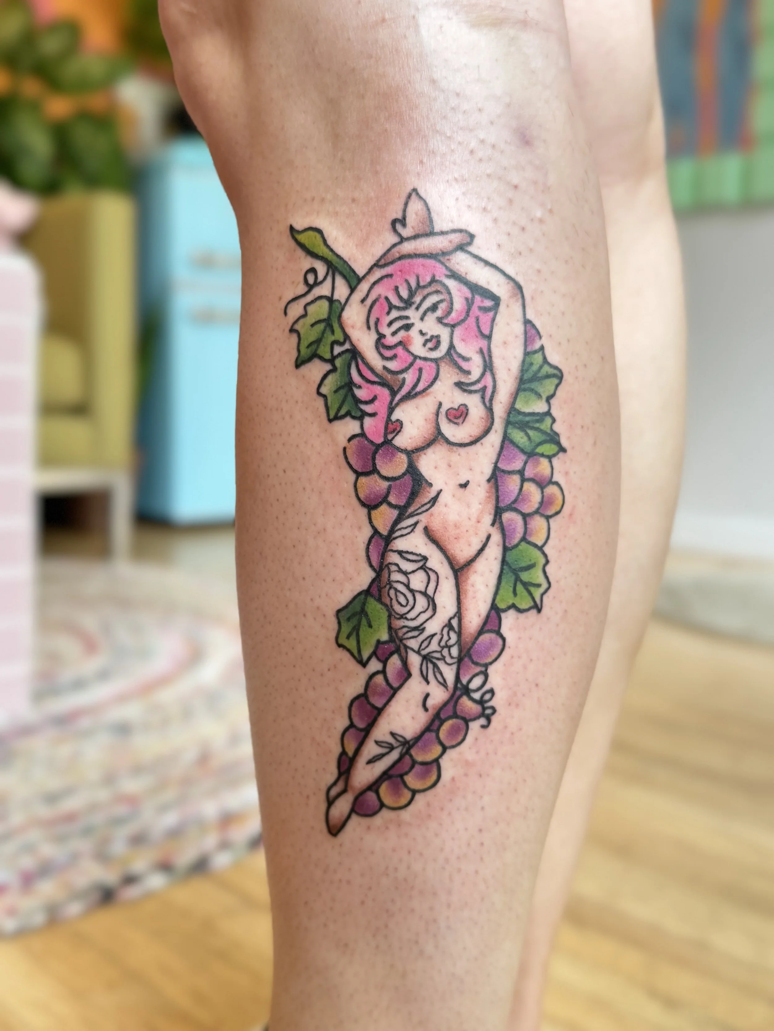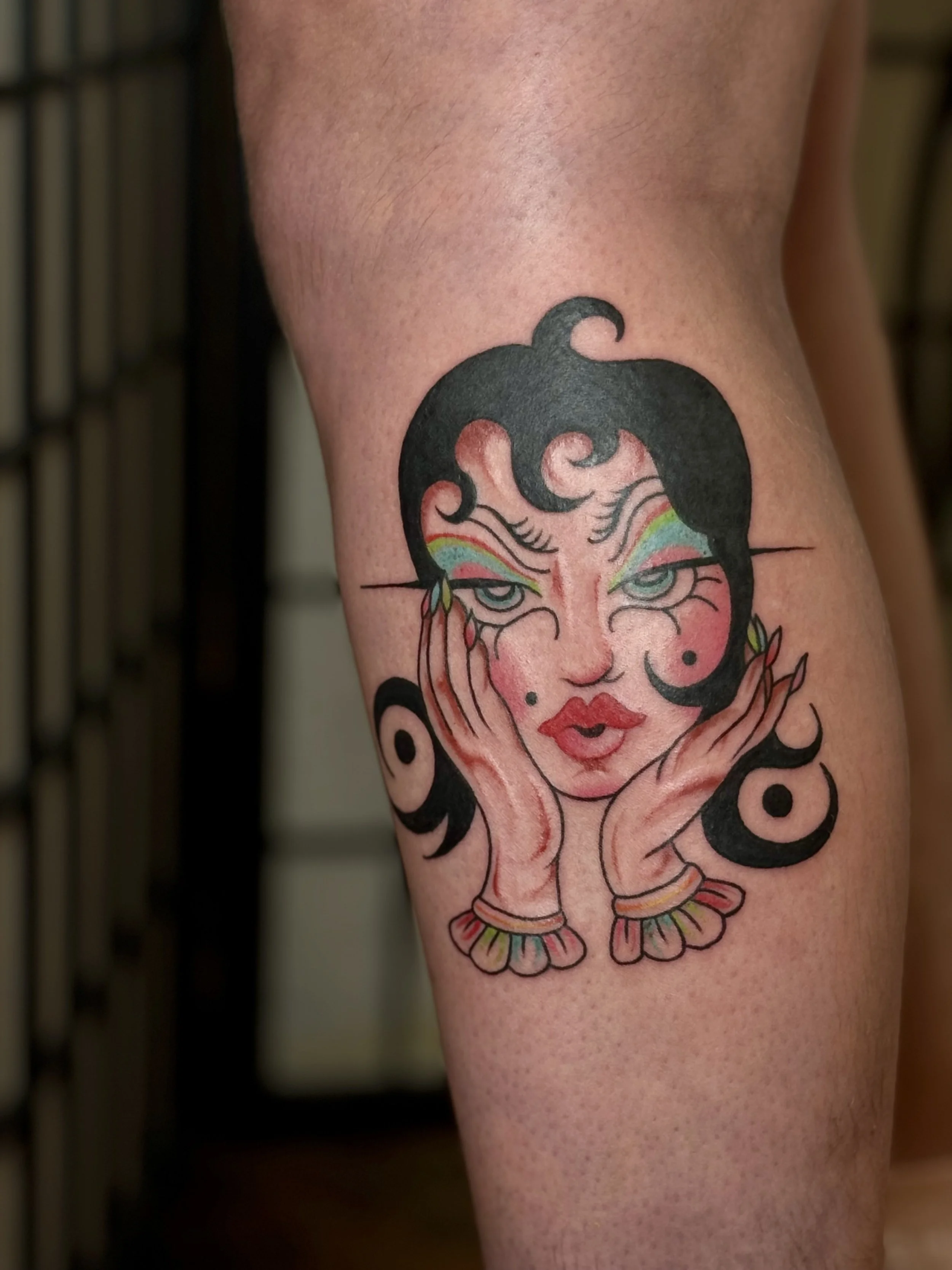 Today in her career; Kay pays homage to the freaks and clowns who paved the way for tattoo artists, by not only being a clown herself, but by also creating bold tattoos that are built to last. Her main specialization is in traditional & neo-traditional tattooing, but is always seeking to step outside her comfort zone to learn other styles or techniques. For those few minutes or hours getting your tattoo it’s super important to Kay that you feel like you’re with a friend for that time. When you’re in her chair it’s a priority that you are seen, heard and always feeling as safe and comfortable as possible. No matter who you are — Kay wants to make your quirkiest tattoo dreams become a reality!