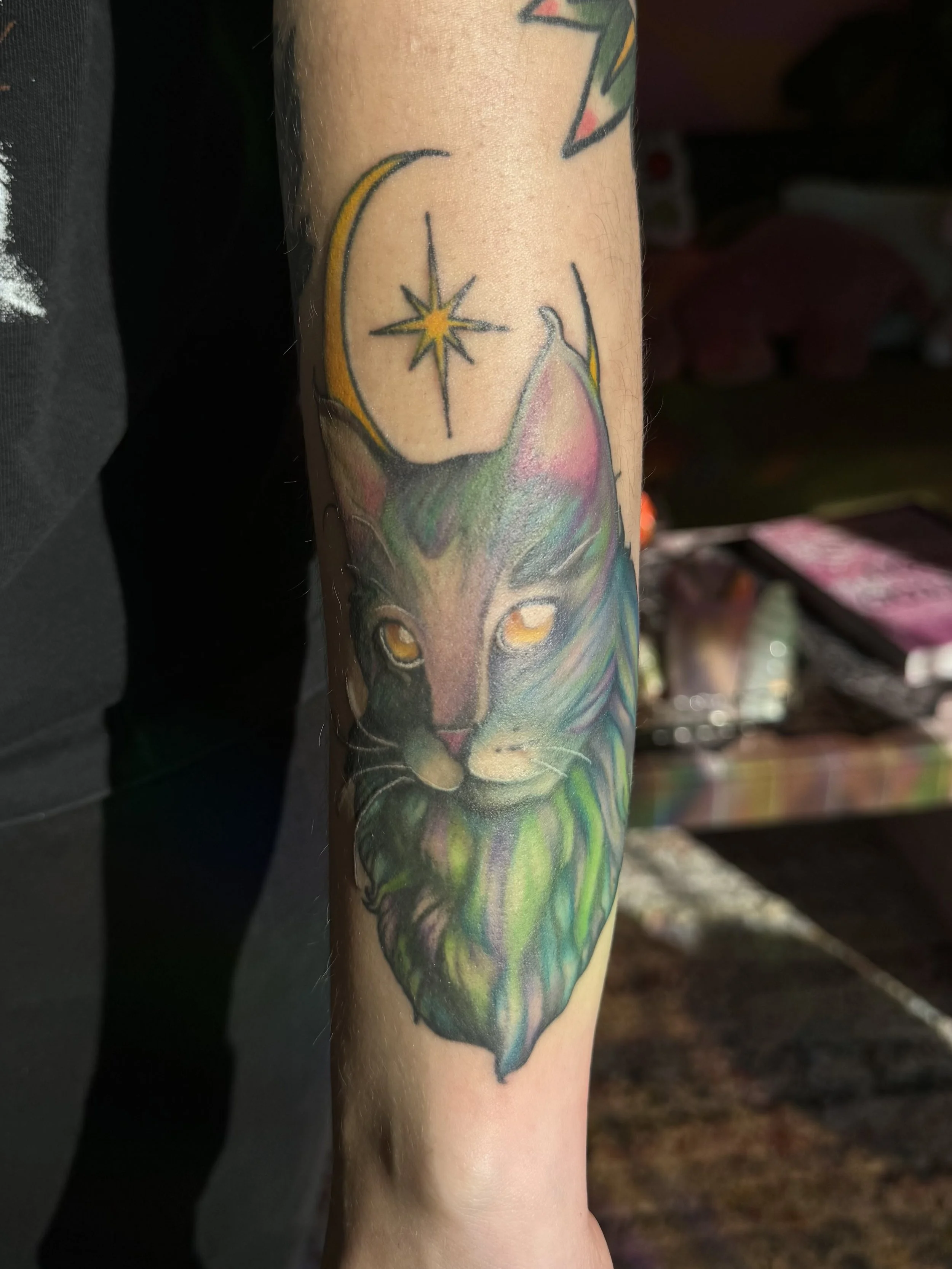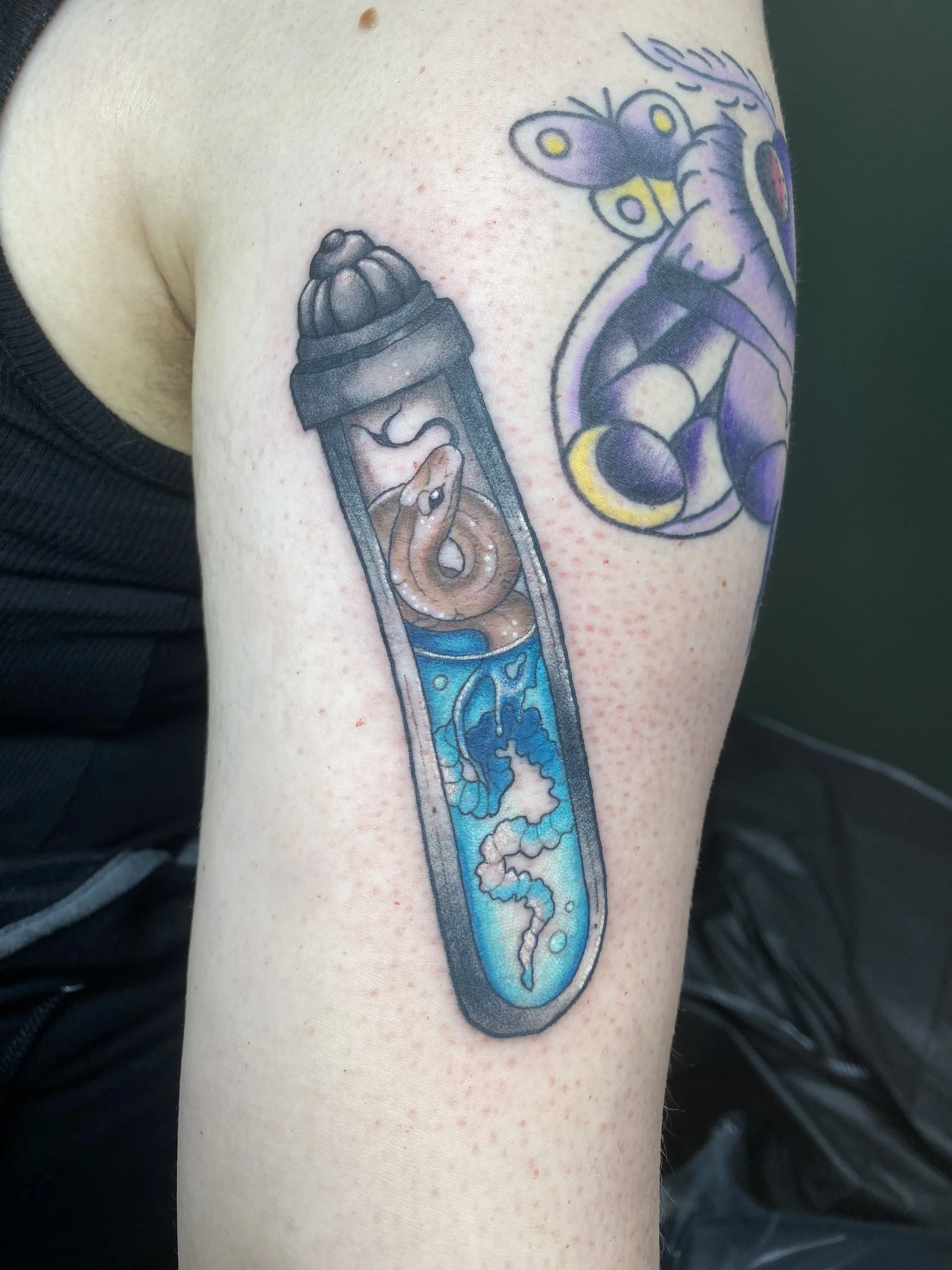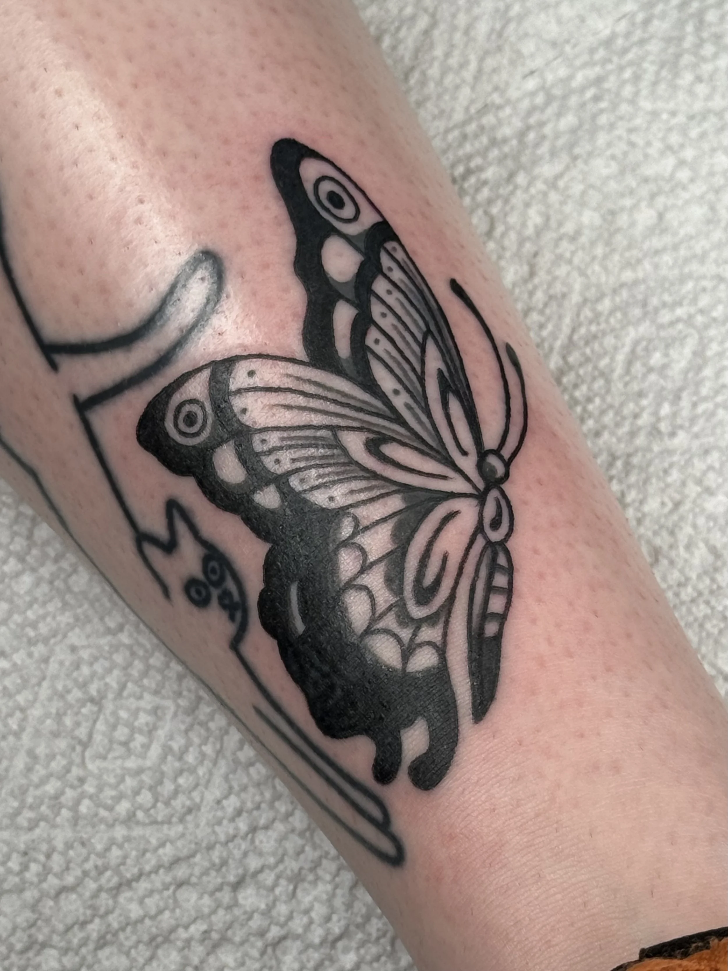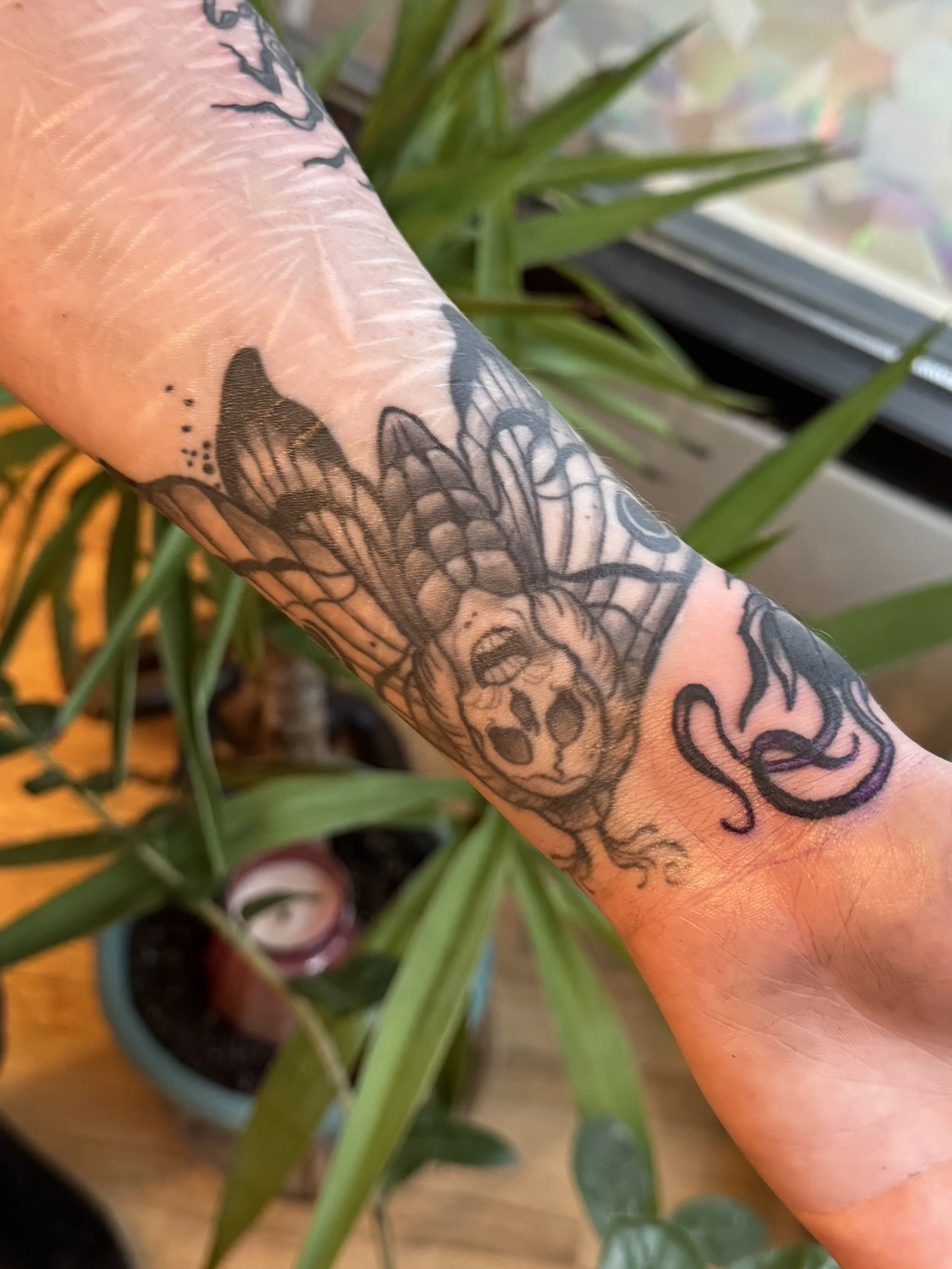She’s been working in the tattoo industry since 2020, where in her early role she instantly fell in love with tattooing as an art form. After refining her portfolio she secured an apprenticeship and soon became professionally licensed in November of 2023!
